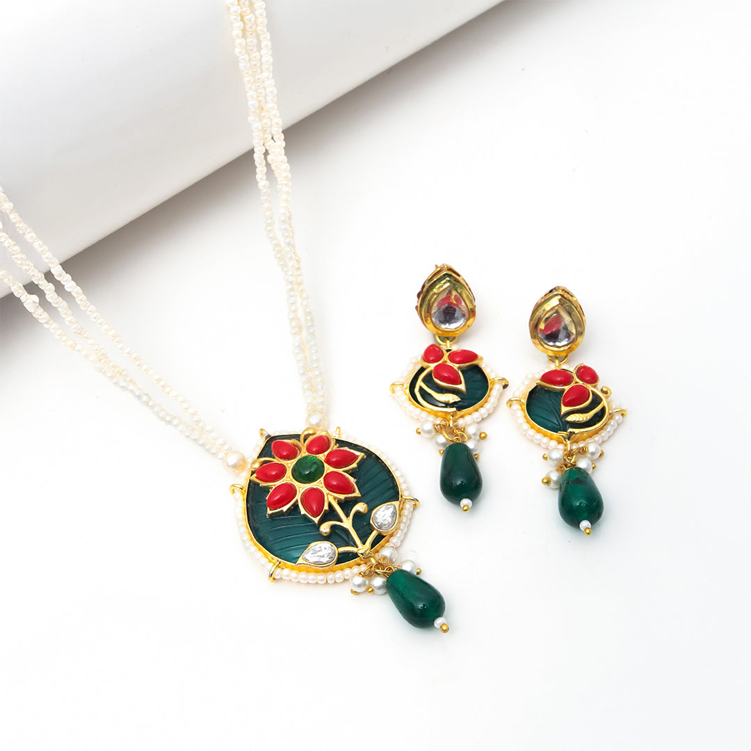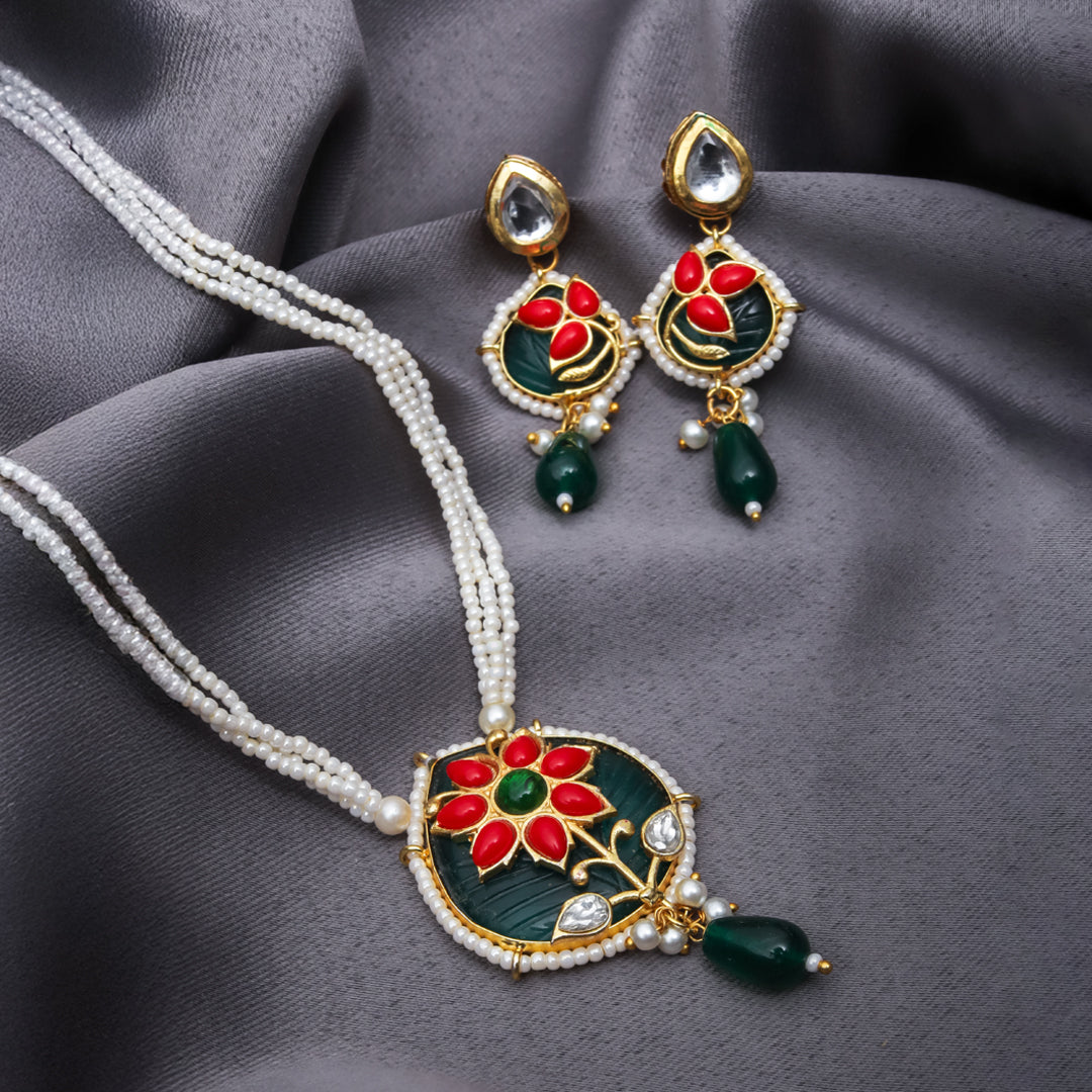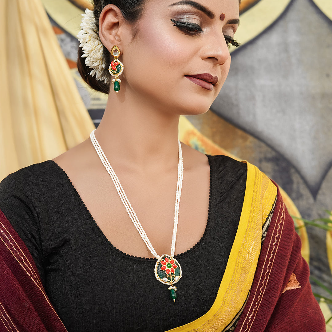 The Rajnigandha Necklace Set from Mini Jewels’ Treasure Collection is a timeless expression of heritage and grace. Adorned with intricate...