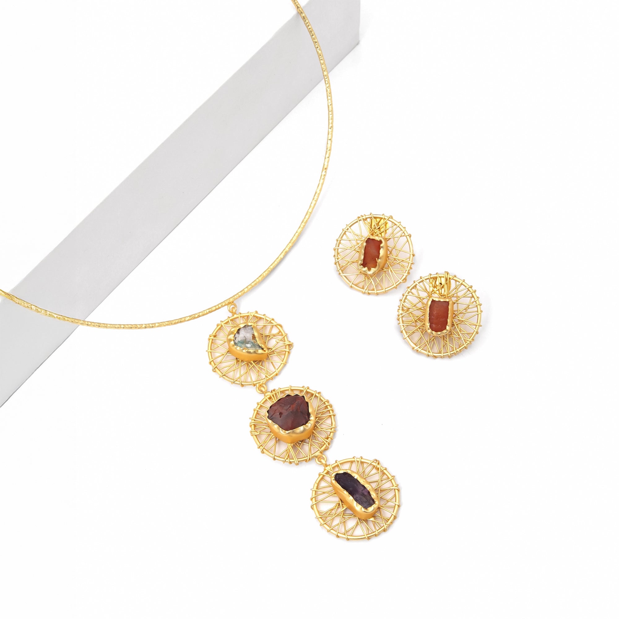 The Trinity Gemstone Cascade Necklace Set from Mini Jewels captures the essence of nature’s artistry, raw, radiant, and rare.Featuring three...