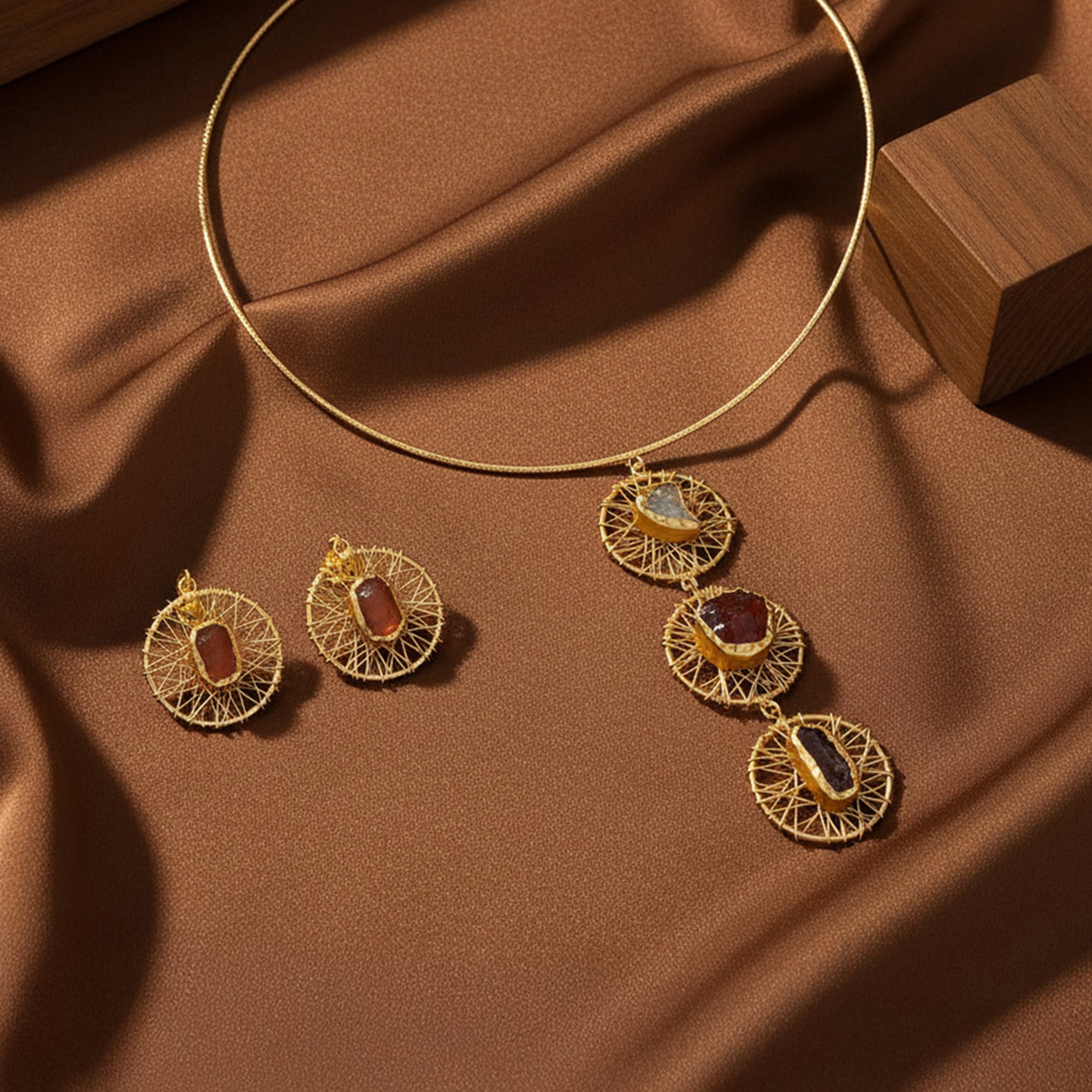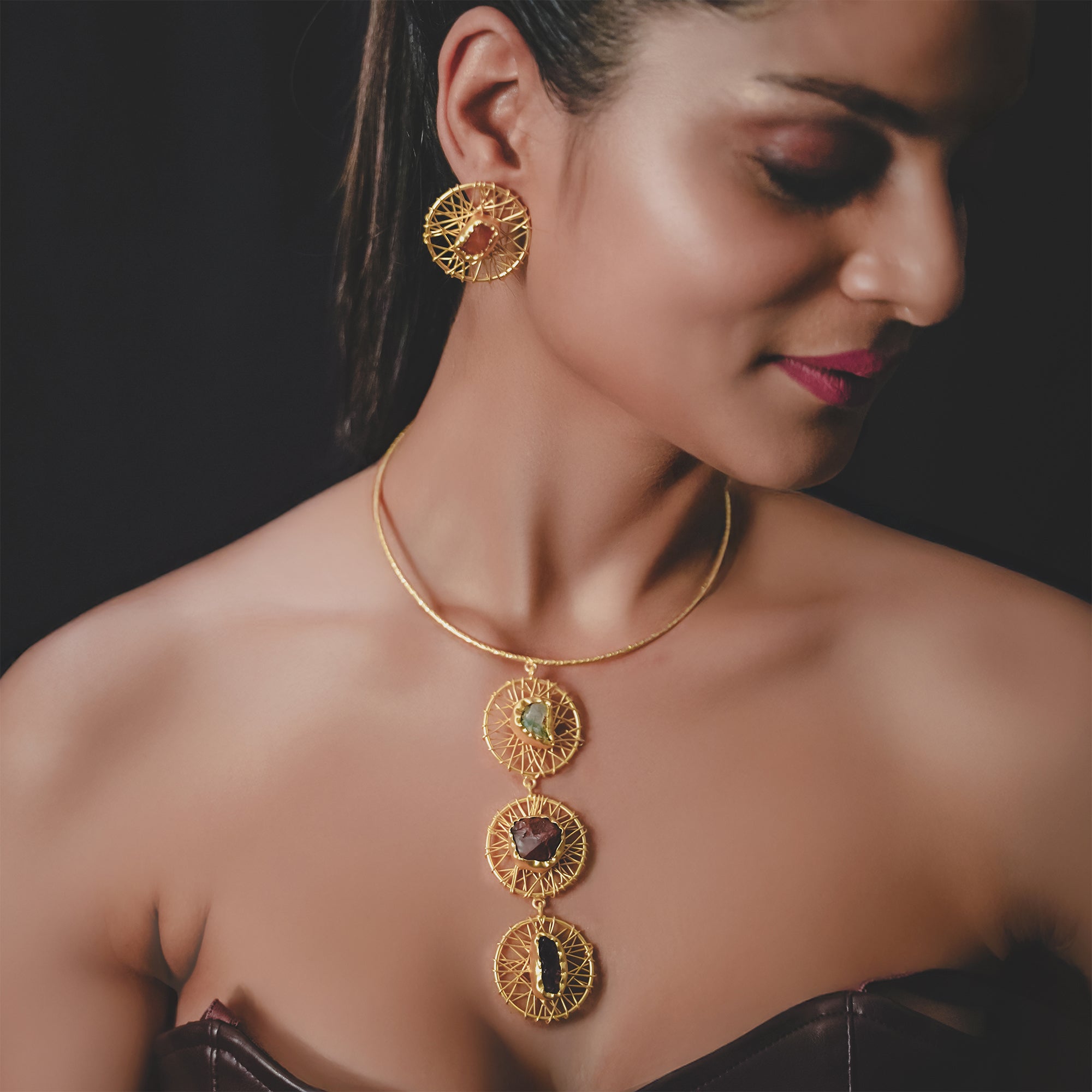 Trinity Gemstone Cascade Necklace Set