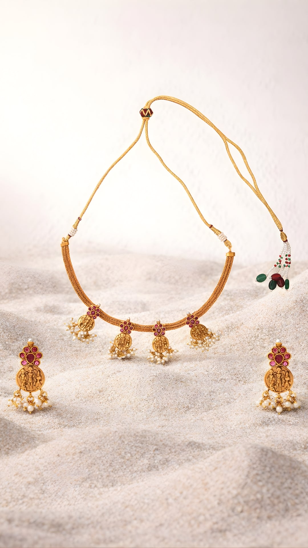 Vanmayi Set – Heritage Coin Necklace with Temple Earrings