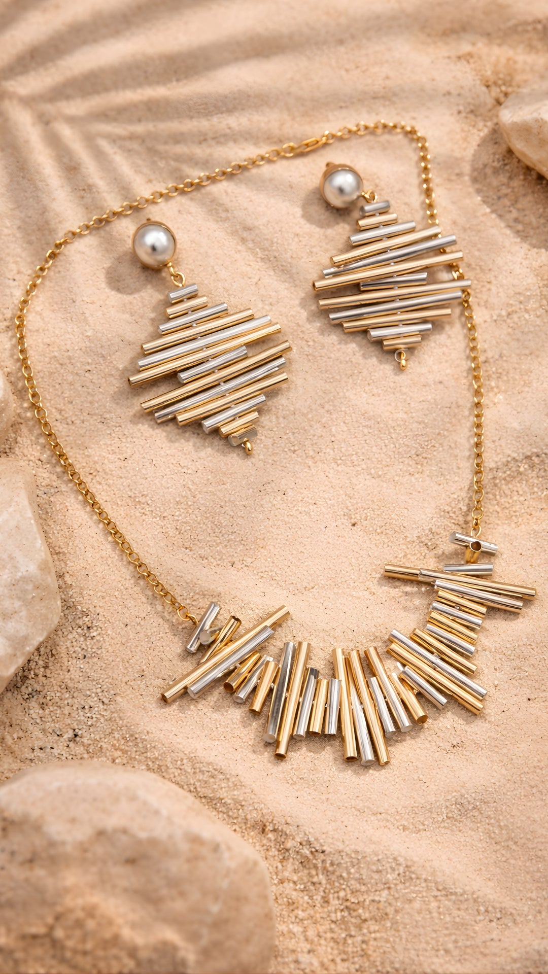Zarina Set – Geometric Bar Necklace & Earrings