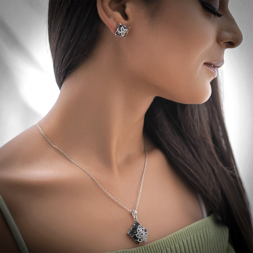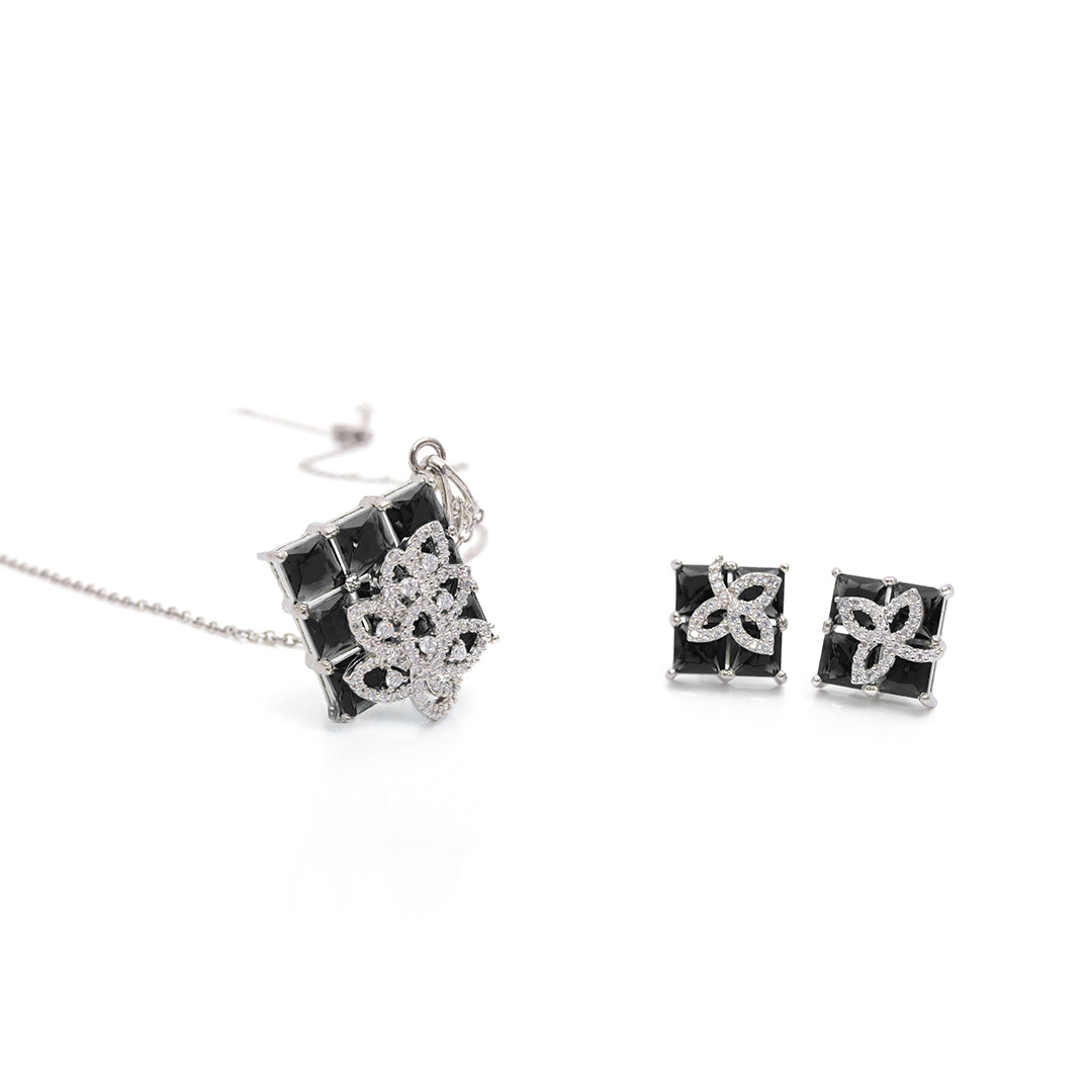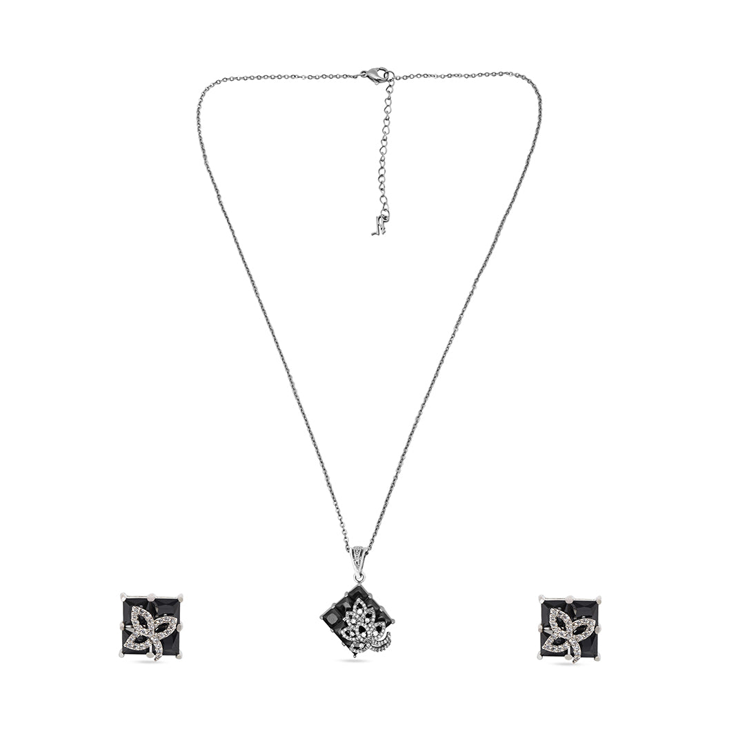Zoya Set – Black Stone Pendant & Earrings